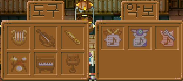 악보를 악보대에 올려놓고 악기를 들고 우클릭하면 연주를 할 수 있습니다.