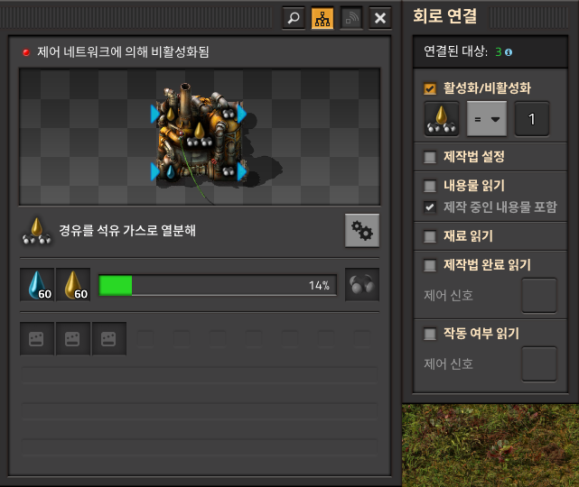마찬가지로 경유를 석유 가스로 열분해하는 화학 공장에도 회로 제어 활성화를 하면 됩니다.