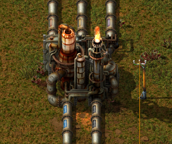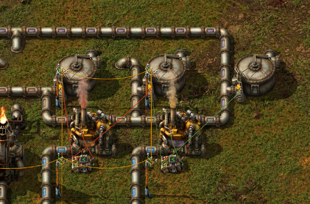 하지만 고급 원유 처리의 경우 3가지 물질을 생산하며, 이 중 하나의 파이프만 가득 차도 공정이 꽉 찬 것으로 인식해서 파이프에 여유가 생기기 전까지 원유를 처리하지 않습니다.